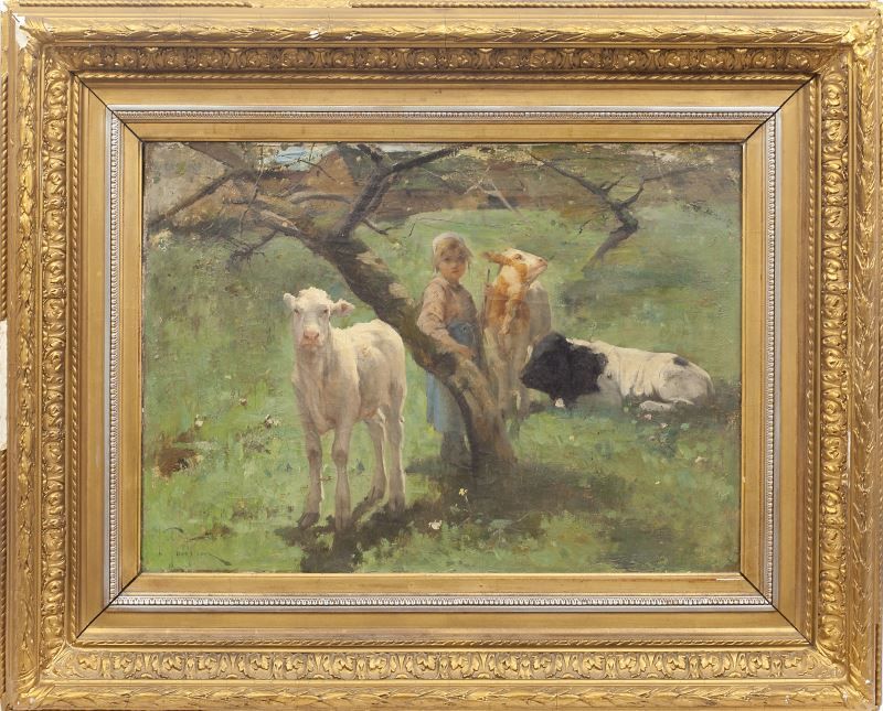 Harry Ives Thompson ( 1840 - 1906 ) was an American painter. Harry Ives Thompson s works have been put up for auction numerous times, with realized prices surpassing estimated prices, varying from 500 USD for COWS IN A LANDSCAPE in 2004 to 4800 USD for At Rest in 2013 , based on the size and medium of the artwork.