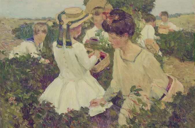 Harry Mills Walcott ( 1870 - 1944 ) was an American painter. Harry Mills Walcott s works have been put up for auction numerous times, with realized prices surpassing estimated prices, varying from 2250 USD for LOGGING SCENE in 2005 to 110500 USD for THE COTILLION in 2011 , based on the size and medium of the artwork.