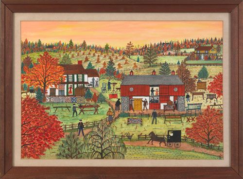 Hattie K Brunner ( 1890 - 1982 ) was an American painter. Hattie K Brunner s works have been put up for auction numerous times, with realized prices surpassing estimated prices, varying from 3910 USD for Amish farm scene in 2005 to 14040 USD for autumn farm scene with figures preparing for an auction in 2007 , based on the size and medium of the artwork.