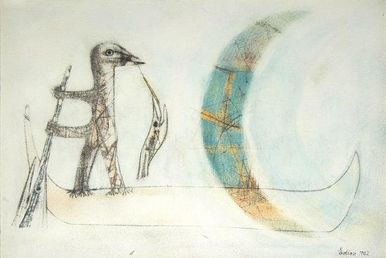 Henri Edion ( 1905 - 1987 ) was an Austrian painter. Henri Edion s works have been put up for auction numerous times, with realized prices surpassing estimated prices, varying from 174.54 USD for three in a boat in 2007 to 290.89 USD for the captured moon in 2007 , based on the size and medium of the artwork.