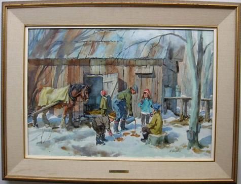 Henry John Simpkins ( 1906 - 1995 ) was a Canadian painter. Henry John Simpkins s works have been put up for auction numerous times, with realized prices surpassing estimated prices, varying from 1020 USD for WINTER, CHARLEVOIX in 2006 to 2870.26 USD for THE SYRUP TASTERS in 2010 , based on the size and medium of the artwork.