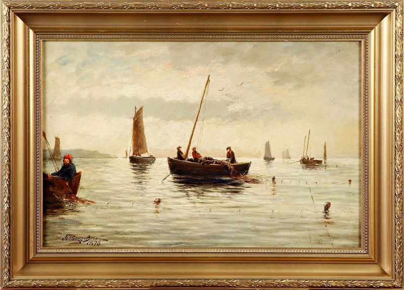 Henry William Jennings Brown ( - 1887 ) was a painter. Henry William Jennings Brown s works have been put up for auction numerous times, with realized prices surpassing estimated prices, varying from 425.8 USD for Scottish Coastal Scene, Early Morning, with Figures on a Beach in the Foreground in 2004 to 721.08 USD for Sydl√§ndskt stadsmotiv in 2005 , based on the size and medium of the artwork.