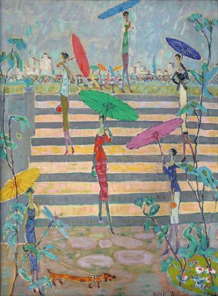 Henryk Wojcik ( 1920 - ) is a painter. Henryk Wojcik s works have been auctioned off multiple times, with realized prices varying according to the size and medium of the artwork, for instance of 3365.33 USD for Spacer z parasolkami in 2011