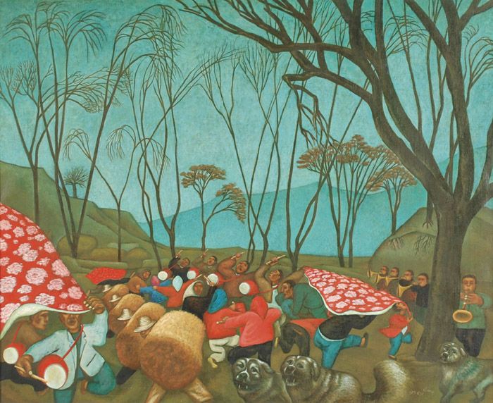 Her Xuesheng ( 1963 - ) is a painter. Her Xuesheng s works have been put up for auction numerous times, with realized prices varying from 200 USD for Shepard, a landscape with a young girl watching after sheep in 2013 to 300 USD for Rehearsal, a landscape with figures dancing and singing in 2013 , based on the size and medium of the artwork.