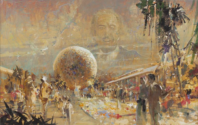 Herbert Ryman ( 1900 - ) is an American painter. Herbert Ryman s works have been put up for auction numerous times, with realized prices surpassing estimated prices, varying from 50 USD for Unknown in 2005 to 3600 USD for Conceptual painting for Disney's EPCOT center in 2013 , based on the size and medium of the artwork.