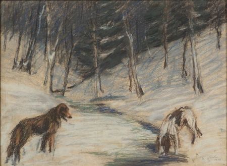 Hilda Ward ( 1878 - 1950 ) was an American painter. Hilda Ward s works have been auctioned off multiple times, with realized prices varying according to the size and medium of the artwork, for instance of 176 USD for Dogs by a Winter Stream in 2007