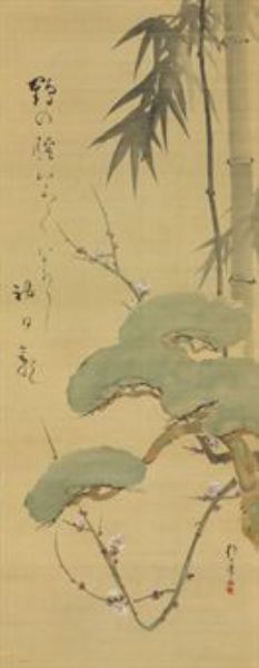 Hoitsu Sakai ( 1761 - 1828 ) was a Japanese painter. Hoitsu Sakai s works have been put up for auction numerous times, with realized prices surpassing estimated prices, varying from 108.84 USD for Hierbij gewassen pentekening van twee apen met een bij in 2005 to 8750 USD for Pine, bamboo and plum in 2009 , based on the size and medium of the artwork.