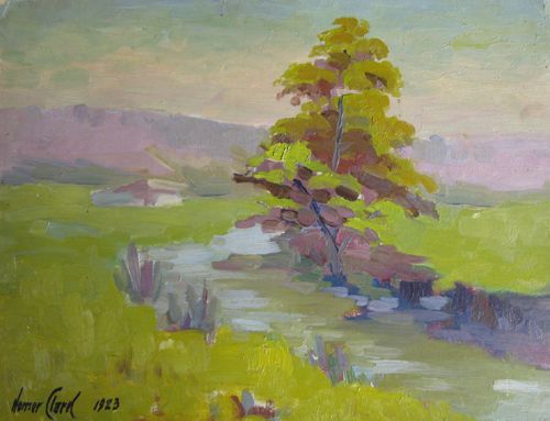 Homer W Clark ( - 1934 ) was an American painter. Homer W Clark s works have been auctioned off multiple times, with realized prices varying according to the size and medium of the artwork, for instance of 180 USD for Landscape with cabin and meandering stream in 2007