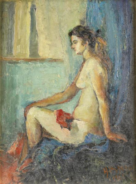 Hosni El Banani ( 1912 - 1989 ) was an Egyptian painter. Hosni El Banani s works have been put up for auction numerous times, with realized prices surpassing estimated prices, varying from 950.03 USD for Nude gathering water in 2011 to 1675.94 USD for Nude in 2015 , based on the size and medium of the artwork.