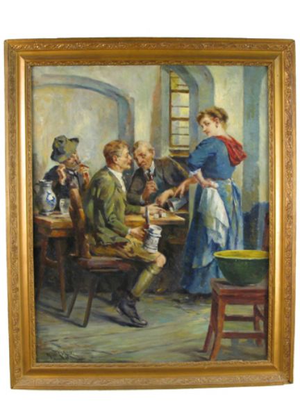 Hugo Loffler ( 1859 - 1935 ) was a German painter. Hugo Loffler s works have been auctioned off multiple times, with realized prices varying according to the size and medium of the artwork, for instance of 1600 USD for Freche Bardame, die Wurfel rollt in 2007