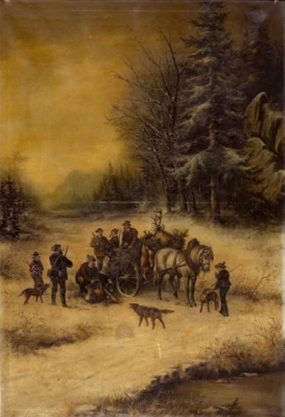 J F Hoffmann ( - ) is a painter. J F Hoffmann s works have been auctioned off multiple times, with realized prices varying according to the size and medium of the artwork, for instance of 4123.71 USD for Jagdgesellschaft in verschneiter Waldlichtung in 2006