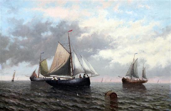 J J Everard ( - ) is a British painter. J J Everard s works have been put up for auction numerous times, with realized prices varying from 256.82 USD for Fishing vessels on calm waters in 2005 to 361.64 USD for Fishing boats off the coast and at sea in 2014 , based on the size and medium of the artwork.