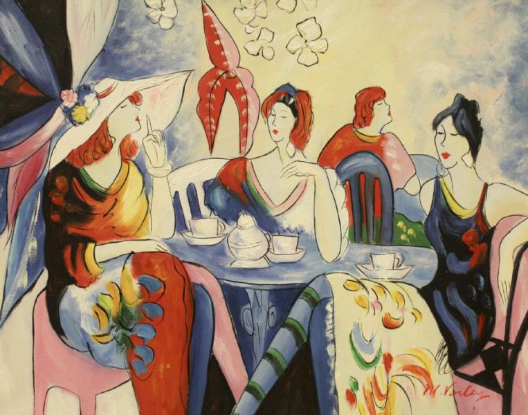 J M Varley ( 1900 - ) is a painter. J M Varley s works have been put up for auction numerous times, with realized prices surpassing estimated prices, varying from 108.34 USD for Children fishing in a rowing boat in 2007 to 160.9 USD for Damer på uteservering in 2013 , based on the size and medium of the artwork.