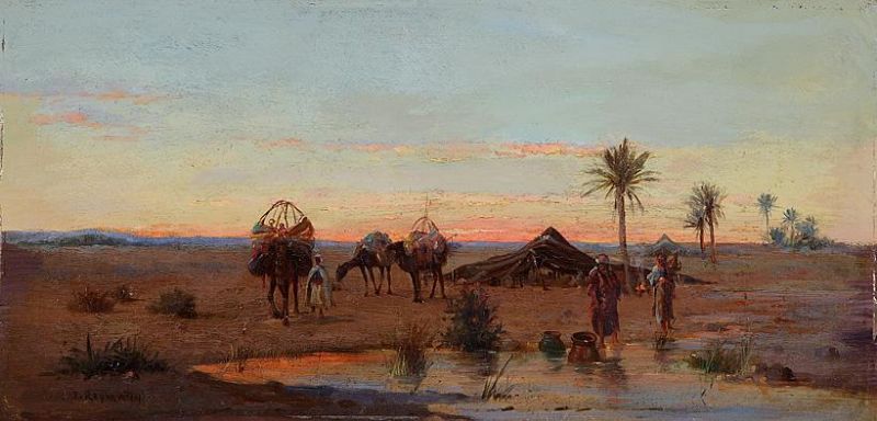 J Reymann ( - ) is a French painter. J Reymann s works have been put up for auction numerous times, with realized prices surpassing estimated prices, varying from 149.08 USD for Chien à l'arrêt in 2005 to 1030.64 USD for Oase bei Sonnenuntergang. An der Wasserstelle Kamele, Frauen und Händler. in 2007 , based on the size and medium of the artwork.
