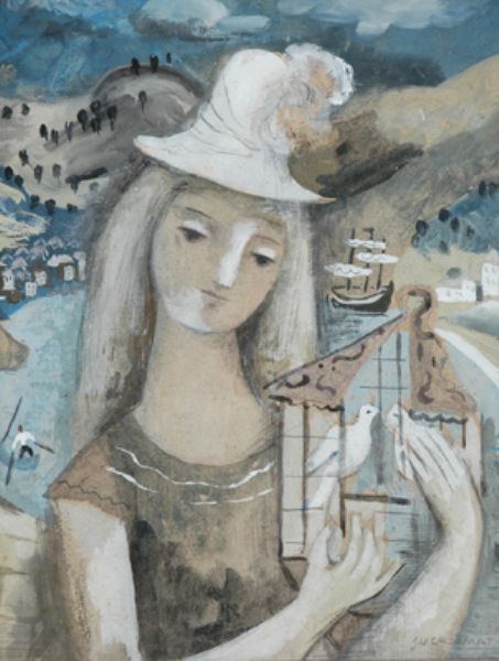 J Wolfgang Cardamatis ( 1917 - ) is a painter. J Wolfgang Cardamatis s works have been auctioned off multiple times, with realized prices varying according to the size and medium of the artwork, for instance of 2085.23 USD for Girl with Doves in a Birdcage in 2006