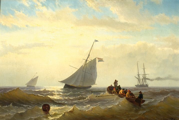Jacob Willem Gruijter ( 1856 - 1908 ) was a Dutch painter. Jacob Willem Gruijter s works have been put up for auction numerous times, with realized prices surpassing estimated prices, varying from 1612.14 USD for Setting out to sea in 2006 to 2811.75 USD for Twee vissersschepen, een stoomschip en mannen in een vlet op open zee in 2007 , based on the size and medium of the artwork.