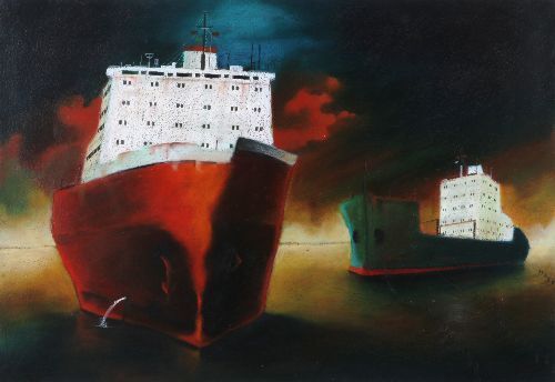 James Pasakos ( 1967 - ) is a painter. James Pasakos s works have been put up for auction numerous times, with realized prices varying from 138.49 USD for The Earth Exchange Building in 2004 to 929.15 USD for The Ship's Wake, 1995 in 2007 , based on the size and medium of the artwork.