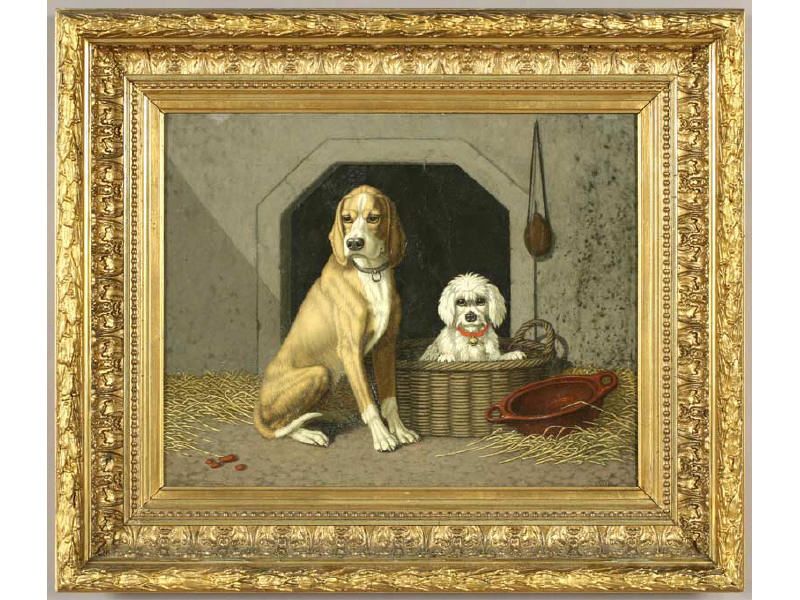 Jan Constant Velghe ( 1826 - 1897 ) was a painter. Jan Constant Velghe s works have been put up for auction numerous times, with realized prices surpassing estimated prices, varying from 743.16 USD for Chiens à la niche in 2004 to 2100 USD for a portrait of a Bichon and its' kennel mate in 2007 , based on the size and medium of the artwork.