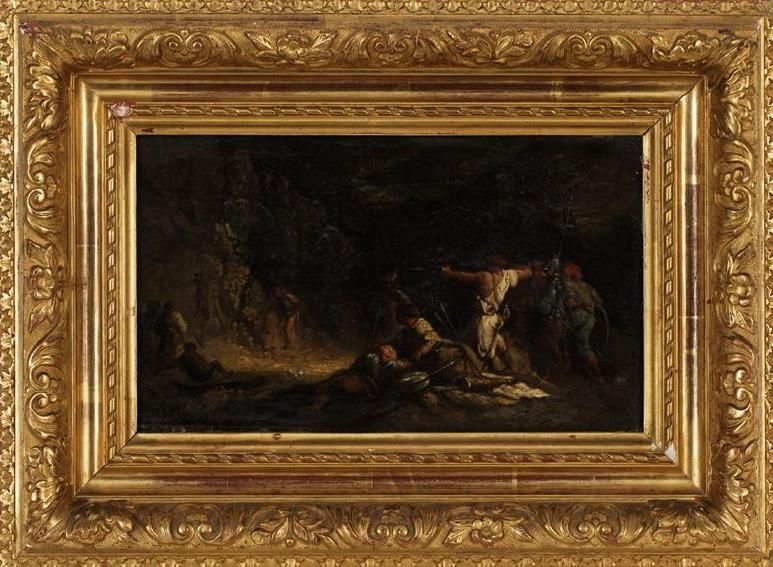 Jean Adrien Guignet ( 1816 - 1854 ) was a French painter. Jean Adrien Guignet s works have been put up for auction numerous times, with realized prices varying from 81.18 USD for Halte de brigands in 2004 to 659.94 USD for Le bivouac in 2013 , based on the size and medium of the artwork.