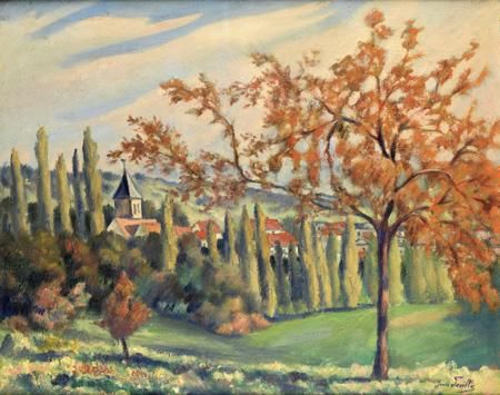 Jean Deville ( 1872 - ) is a French painter. Jean Deville s works have been put up for auction numerous times, with realized prices surpassing estimated prices, varying from 5736 USD for Landscape with cypresses in 2002 to 7526.46 USD for Journée orageuse: le bassin de la Villette, Paris in 2006 , based on the size and medium of the artwork.