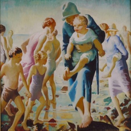 Jean Maclane ( 1878 - 1964 ) was an American painter. Jean Maclane s works have been put up for auction numerous times, with realized prices surpassing estimated prices, varying from 52500 USD for TENNIS DAYS in 2004 to 55000 USD for Beach Life, Devonshire, 1926 in 2006 , based on the size and medium of the artwork.