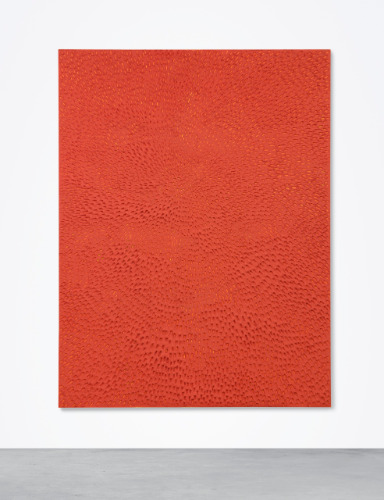 Jennifer Guidi ( 1972 - ) is a painter. Jennifer Guidi s works have been put up for auction numerous times, with realized prices surpassing estimated prices, varying from 137500 USD for UNTITLED (FIELD SF #1M BLACK AND WHITE) in 2017 to 206933.01 USD for UNTITLED (RED SAND SF #1E, YELLOW GROUND) in 2018 , based on the size and medium of the artwork.