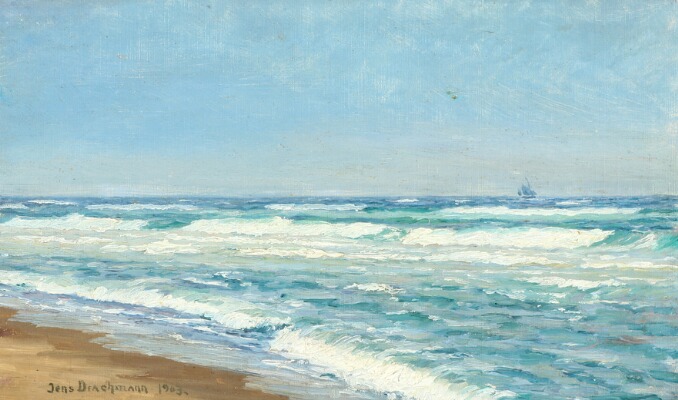 Jens Drachmann ( 1880 - 1929 ) was a Danish painter. Jens Drachmann s works have been put up for auction numerous times, with realized prices surpassing estimated prices, varying from 247.45 USD for Landscape with houses in the background in 2005 to 2313.59 USD for Coastal scenery with a sailing ship in the background in 2018 , based on the size and medium of the artwork.