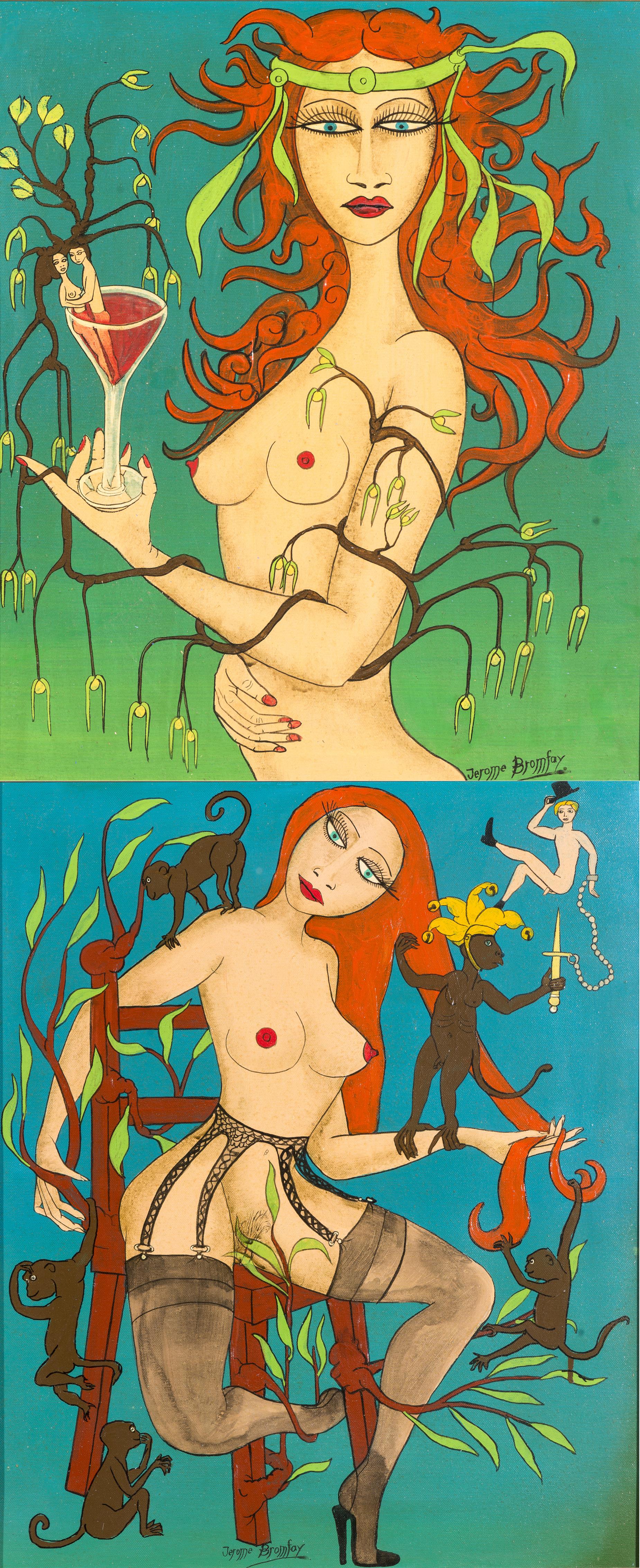 Jerome Bromfay ( 1935 - 2015 ) was a French painter. Jerome Bromfay s works have been put up for auction numerous times, with realized prices varying from 99.64 USD for "2 Femmes" & "Femmes dans le corps d'une poule machine". in 2017 to 518.13 USD for 'Femme assise et singes'. in 2017 , based on the size and medium of the artwork.