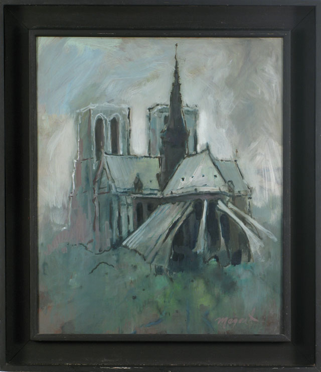 Jerry Van Megert ( 1938 - ) is a painter. Jerry Van Megert s works have been put up for auction numerous times, with realized prices surpassing estimated prices, varying from 250 USD for Notre Dame Cathedral in 2010 to 1200 USD for Black-Tailed Deer by a Bay Near Carmel in 2010 , based on the size and medium of the artwork.