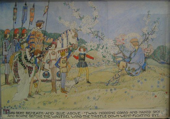Jessie Marion King ( 1875 - 1949 ) was a British painter. Jessie Marion King s works have been put up for auction numerous times, with realized prices surpassing estimated prices, varying from 1680.99 USD for THE PONT NEUF, PARIS in 2003 to 8750 USD for AND THERE I FOUND THE DAWN A WREATH OF EGLANTINE AMONG HER TRESSES HER VIOLET EYES NEW BORN in 2009 , based on the size and medium of the artwo