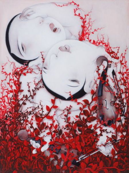 Jia Gang ( 1974 - ) is a painter. Jia Gang s works have been put up for auction numerous times, with realized prices surpassing estimated prices, varying from 35182 USD for It Takes Strength to Speak Out in 2008 to 60181 USD for Beautiful Bird, Please Stay! (diptych) in 2012 , based on the size and medium of the artwork.