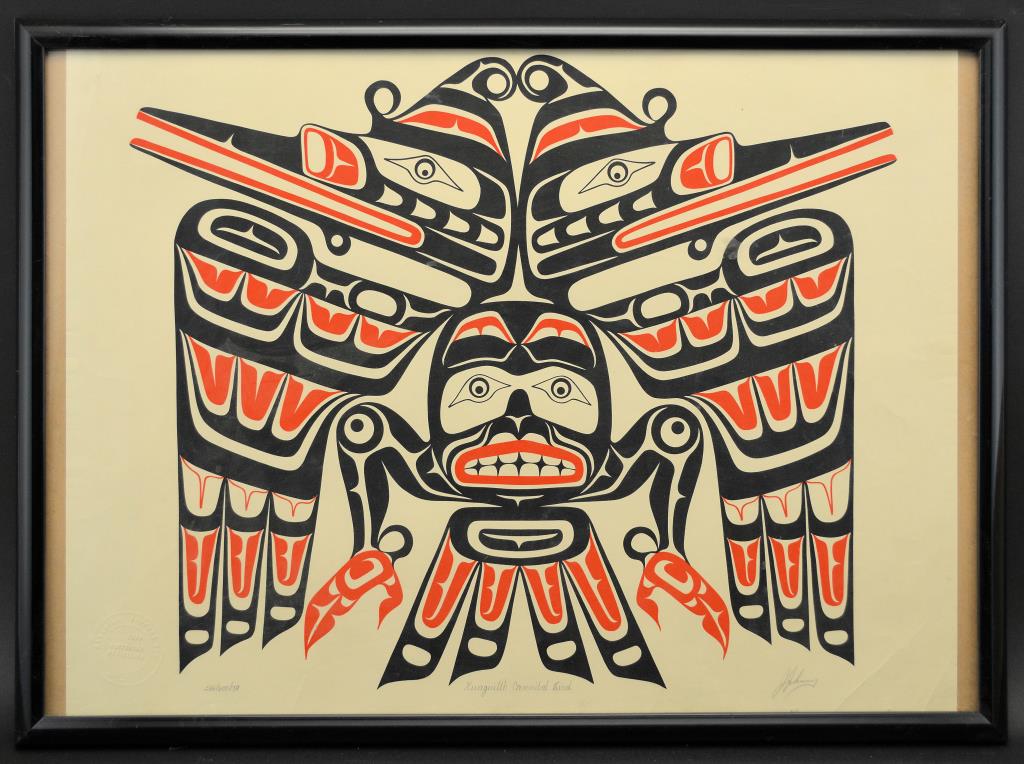 JIM JOHNNY KWAGUILTH ( - ) is a Canadian painter. JIM JOHNNY KWAGUILTH s works have been auctioned off multiple times, with realized prices varying according to the size and medium of the artwork, for instance of 93.22 USD for "Cannibal Bird" in 2017