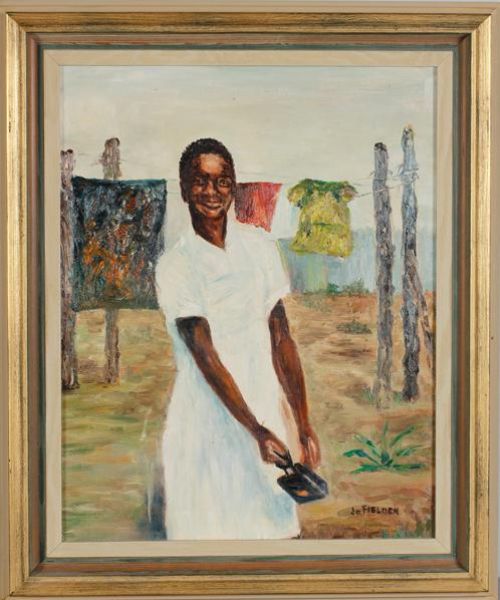Jo Fielder ( 1900 - ) is an American painter. Jo Fielder s works have been auctioned off multiple times, with realized prices varying according to the size and medium of the artwork, for instance of 60 USD for portrait of an African American woman in 2013
