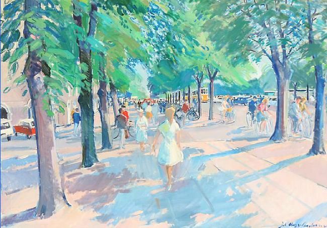 Johan Meyer Andersen ( 1918 - ) is a painter. Johan Meyer Andersen s works have been put up for auction numerous times, with realized prices surpassing estimated prices, varying from 185.05 USD for hästekipage på stranden in 2007 to 609.15 USD for Höbärgning in 2010 , based on the size and medium of the artwork.