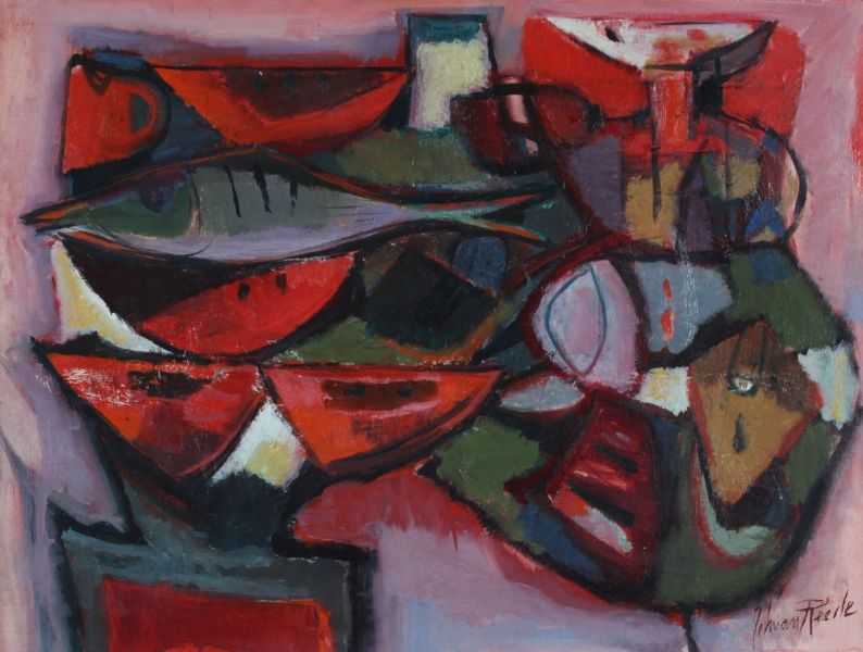 Johan Van Reede ( 1921 - ) is a painter. Johan Van Reede s works have been put up for auction numerous times, with realized prices varying from 74.93 USD for Abstract stilleven in 2005 to 298.21 USD for Stilleven op rode doek. in 2009 , based on the size and medium of the artwork.