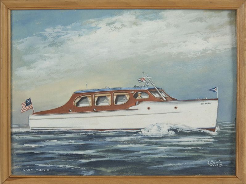 John Austin Taylor ( - ) is a painter. John Austin Taylor s works have been put up for auction numerous times, with realized prices surpassing estimated prices, varying from 460 USD for Of the Virtue flying the Hornor burgee in 2006 to 1610 USD for Lady Marie in 2010 , based on the size and medium of the artwork.