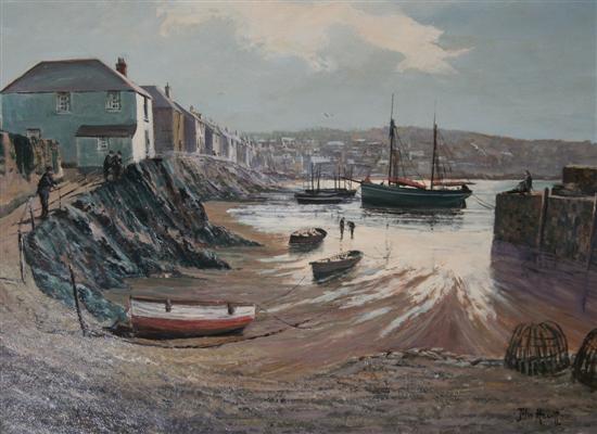 John Hewitt ( 1900 - ) is a painter. John Hewitt s works have been put up for auction numerous times, with realized prices varying from 29.17 USD for Moored fishing boats within harbour walls in 2009 to 147.08 USD for Newlyn in 2010 , based on the size and medium of the artwork.