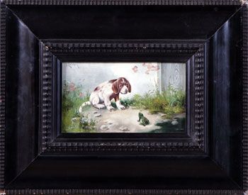 Josef Lohinger ( 1800 - 1900 ) was a German painter. Josef Lohinger s works have been put up for auction numerous times, with realized prices surpassing estimated prices, varying from 450 USD for Rooster and Chickens in 2006 to 638.66 USD for ”Vad vill du?” - hund och groda vid husknut in 2008 , based on the size and medium of the artwork.