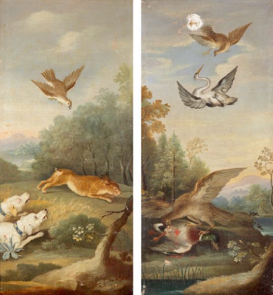 Joseph Anton Harrath ( - ) is a German painter. Joseph Anton Harrath s works have been put up for auction numerous times, with realized prices surpassing estimated prices, varying from 2307.95 USD for Hirschhatz in 2004 to 12172.36 USD for Hounds chasing a wild boar; and Hounds chasing a stag, pendants in 2004 , based on the size and medium of the artwork.