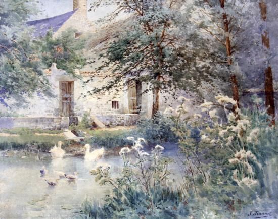 Joseph Clément M Jeannot ( 1855 - ) is a French painter. Joseph Clément M Jeannot s works have been put up for auction numerous times, with realized prices varying from 71.87 USD for Etang dans les bois in 2005 to 160.12 USD for Ducks by a riverside cottage in 2010 , based on the size and medium of the artwork.