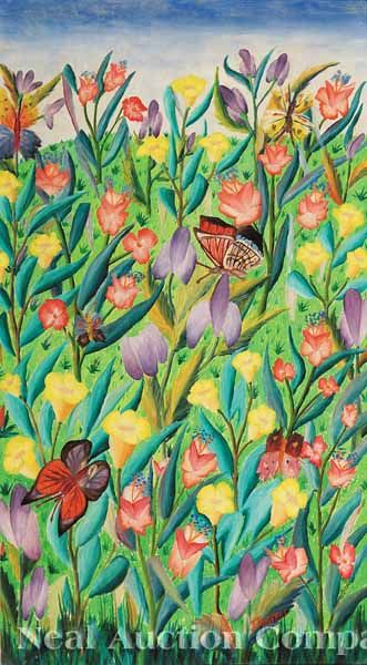 Joseph Jean Gilles ( 1943 - ) is a Haitian painter. Joseph Jean Gilles s works have been put up for auction numerous times, with realized prices varying from 94 USD for Feeding the Pigeons in 2006 to 490 USD for The Butterfly Garden in 2007 , based on the size and medium of the artwork.