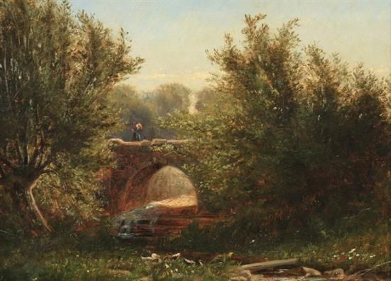 Joseph R Woodwell ( 1843 - 1911 ) was an American painter. Joseph R Woodwell s works have been auctioned off multiple times, with realized prices varying according to the size and medium of the artwork, for instance of 3200 USD for LANDSCAPE WITH DUCKS AND BRIDGE in 2009