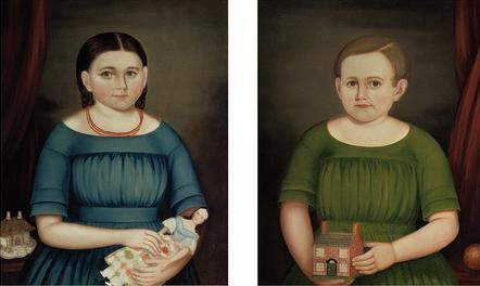 Joseph Whiting Stock ( 1815 - 1855 ) was an American painter. Joseph Whiting Stock s works have been put up for auction numerous times, with realized prices surpassing estimated prices, varying from 15600 USD for DOUBLE PORTRAIT OF A YOUNG BOY WITH WHIP AND HIS SISTER WITH BOUQUET OF FLOWERS in 2006 to 68500 USD for PORTRAIT OF A YOUNG GIRL IN PINK DRESS WITH DOLL'S BASKET AND DOLL'S FRUIT BASKE