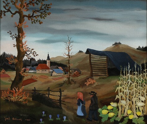 Joze Peternelj Mausar ( 1927 - ) is a painter. Joze Peternelj Mausar s works have been put up for auction numerous times, with realized prices surpassing estimated prices, varying from 530.61 USD for PEASANTS ON A SNOWY HILL; 1979 in 2008 to 693.88 USD for PEASANTS IN A VILLAGE WITH A HILLTOP CHURCH; 1980 in 2008 , based on the size and medium of the artwork.