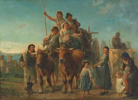 Jules Contant ( 1822 - 1885 ) was a French painter. Jules Contant s works have been put up for auction numerous times, with realized prices surpassing estimated prices, varying from 351.21 USD for Soirée d'automne sur la vallée in 2008 to 5670.63 USD for THE PEASANTS WEDDING TRAIN in 2008 , based on the size and medium of the artwork.