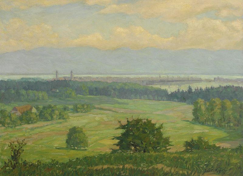 Julius Koch ( 1882 - 1952 ) was a German painter. Julius Koch s works have been put up for auction numerous times, with realized prices surpassing estimated prices, varying from 82.12 USD for Am Untersee in 2005 to 491.27 USD for Blick von der Höhe auf Lindau an einem Sommerabend in 2007 , based on the size and medium of the artwork.