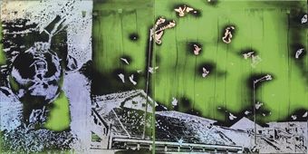 Justin Ponmany ( 1974 - ) is a painter. Justin Ponmany s works have been put up for auction numerous times, with realized prices surpassing estimated prices, varying from 48000 USD for VERTIGO in 2006 to 104500 USD for Trojan in 2008 , based on the size and medium of the artwork.