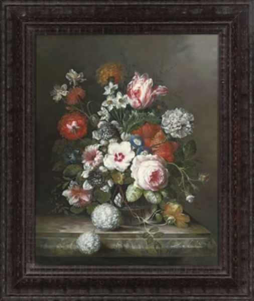K s Nicolaes ( 1900 - ) is a painter. K s Nicolaes s works have been auctioned off multiple times, with realized prices varying according to the size and medium of the artwork, for instance of 477.55 USD for Morning glory, a parrot tulip, a rose and other flowers in a glass vase on a marble ledge in 2008