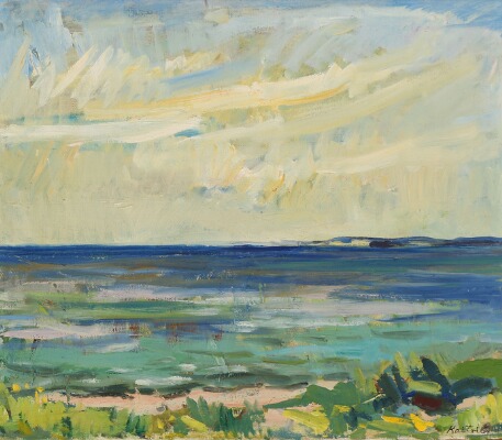Kai Trier ( 1902 - 1990 ) was a Danish painter. Kai Trier s works have been put up for auction numerous times, with realized prices surpassing estimated prices, varying from 157.9 USD for Still life with flowers in 2005 to 547.97 USD for Spring scenery with grazing cows. in 2006 , based on the size and medium of the artwork.
