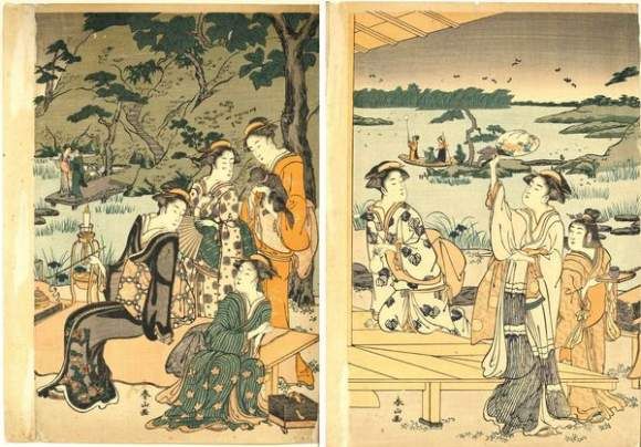 Katsukawa Shunzan ( 1782 - ) is a Japanese painter. Katsukawa Shunzan s works have been put up for auction numerous times, with realized prices surpassing estimated prices, varying from 420 USD for Woman with Monkey, Women and Girl with Boat in Background in 2005 to 424.93 USD for depicting figures with lanterns in the foreground taking a leisurely stroll and resting on the banks of the Sumidaga